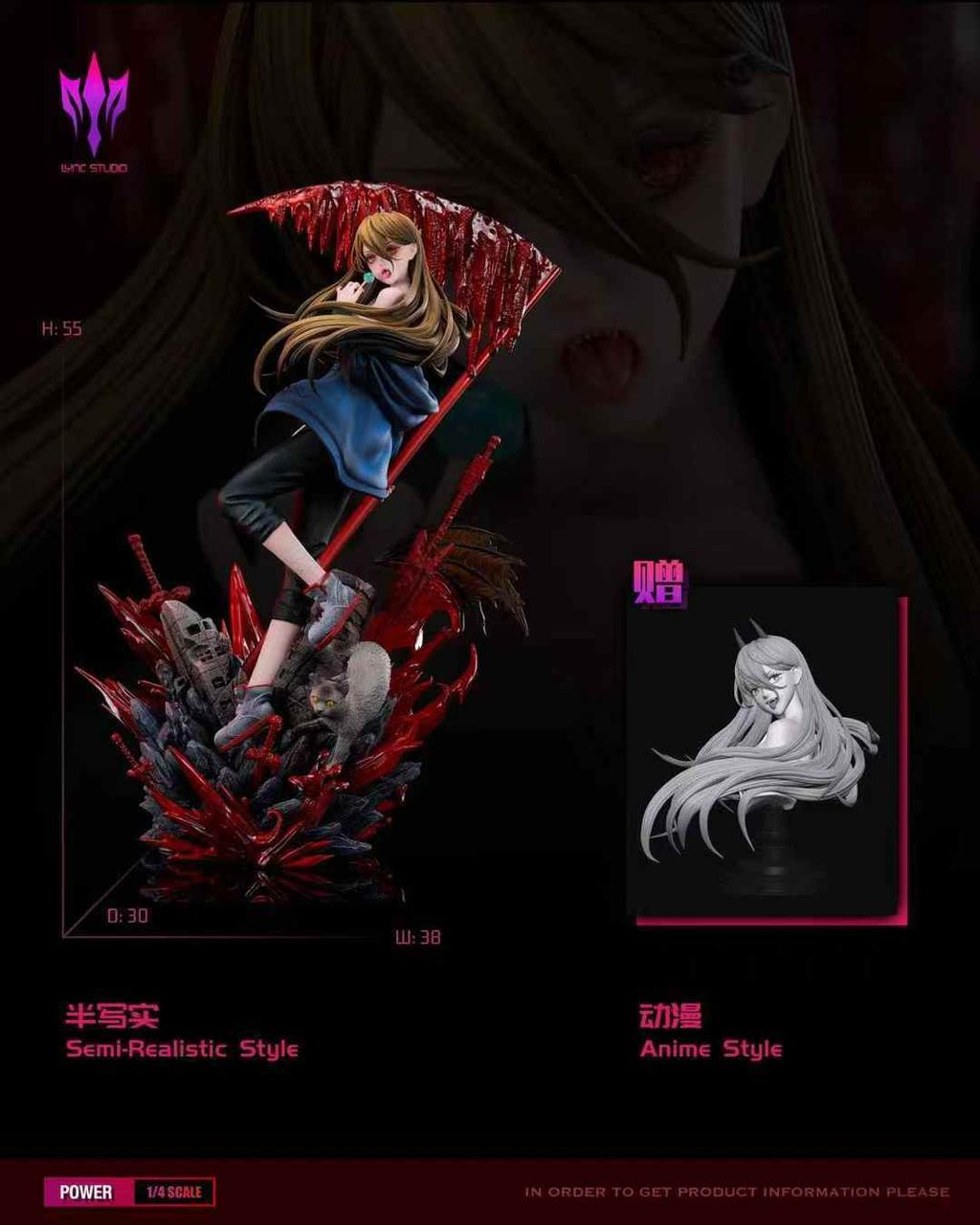 Manufacture:Lync StudioSeries:Chainsaw ManMaterial:Pu+Poly+AbsStatue Weight:UnknownMeasurement:H55cm W38cm D30cmLimited Edition:148 pieces worldwideTotal Price:Rm1890,Deposit:Rm700,Last payment:Rm1190Shipping Date:2026 first quarter
